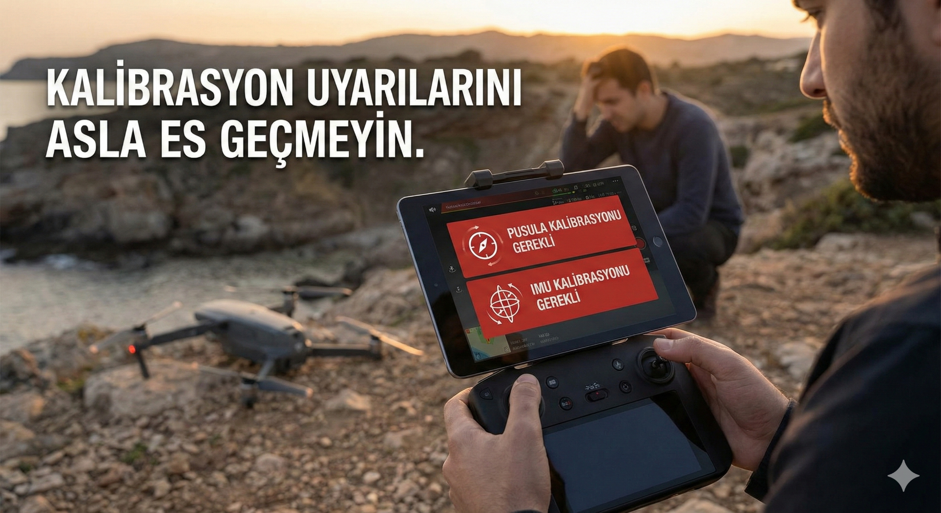 Pusula (Compass) ve IMU kalibrasyonları drone'un dengesi için hayati önem taşır. Özellikle yeni bir lokasyonda uçuş yapıyorsanız kalibrasyon uyarılarını asla es geçmeyin.